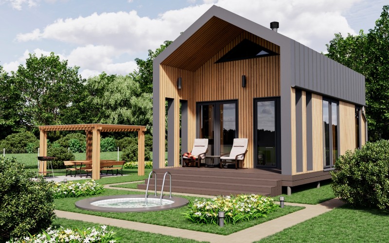 гостевой дом-баня в стиле барнхаус для отдыха от городской суеты